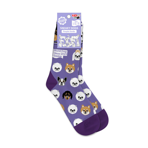 World Dog Show 2023 bavlnené ponožky fialové so šteňatami