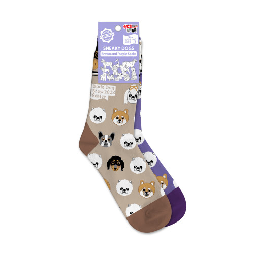 World Dog Show 2023 bavlnené ponožky hnedá a fialová so šteňatami