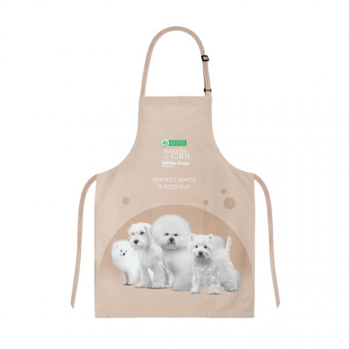 Zástera pre starostlivosť o zvieratá – na použitie v profesionálnych predajniach, salónoch, veterinárnych klinikách, školách starostlivosti o zvieratá a chovateľských staniciach. Extrémne pohodlná a štýlová zástera. Zástera je odolná voči vlhkosti, prachu, chlpom a baktériám. Je vyrobená z najkvalitnejších materiálov, a preto je nenáročná na údržbu a ľahko sa čistí. Zástera má predné vrecko na ľahké uloženie nožníc pri úprave. Opasok na krk je nastaviteľný na rôzne veľkosti. Rozmery: 60x70 cm. Veľkosť vrecka: 20x15 cm.