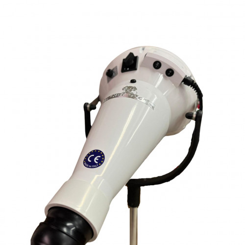 Fén pre psov so stojanom, ktorý vám umožní mať pri práci voľné ruky a pracovať v tichom prostredí. Na fén je možné nasadiť flexibilnú predlžovaciu hadicu (nie je súčasťou dodávky), ktorú je možné nastavovať všetkými smermi, je možné na ňu tiež nasadiť 3 vymeniteľné trysky, ktorých flexibilita ponúka veľký komfort použitia. Prúd vzduchu 780 m3 za hodinu. Ovládací panel na výber medzi dvoma intenzitami tepla + regulátor intenzity fúkania. Fén je vyrobený v Taliansku a záruka je 3 roky. Technické informácie: Napätie - Napätie 230 V, Frekvencia - Frekvencia 50 Hz, Hmotnosť - Hmotnosť 5,5 Kg, Maximálny výkon - Max výkon 2100 W, Priemer vývodu - Priemer trubky ø7 cm, Kubické metre za hodinu - Kubické metre za hodinu 780 / h