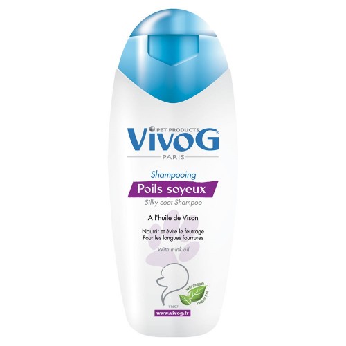 Vivog Poils Soyeux - šampón pre psov s dlhou srsťou, s norkovým olejom a vitamínom F - 200 ml