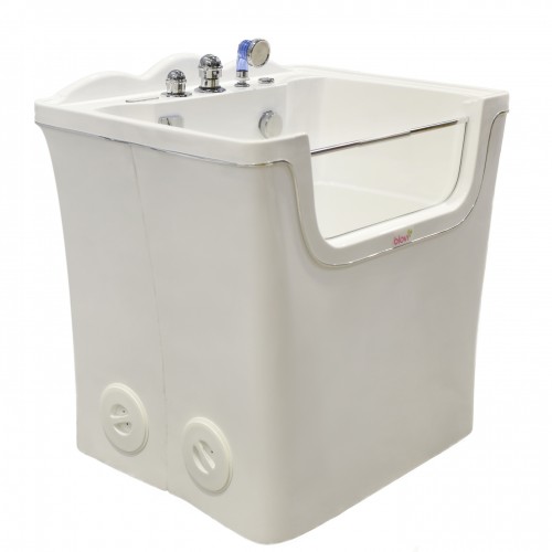 Prevádzkujete profesionálny salón pre starostlivosť o domáce zvieratá? Chcete zvýšiť prehľad o svojej spoločnosti a rozšíriť svoje služby? Máme pre vás riešenie! Táto profesionálna vírivka je určená pre všetkých profesionálov, ktorí chcú svojim klientom ponúknuť novú liečbu – relaxačný bublinkový kúpeľ s chromoterapiou (farebnou terapiou). Výhody hydromasáže sú dobre známe. Hydroterapia má mnoho využití pri liečbe rôznych ochorení a tiež zlepšuje pohodu stresovaných zvierat a zvierat s rôznymi bolesťami, ako sú bolesti kĺbov. Vaňa je tiež vybavená bodovým LED osvetlením v rôznych farbách, ktoré sa dá použiť na chromoterapiu. Už dlho je známe, že farby majú silný vplyv na náladu a pohodu. Niektoré môžu byť upokojujúce, iné môžu byť dráždivé. Farebná terapia môže upokojiť, relaxovať alebo povzbudiť v závislosti od použitých farieb. Intenzívne farby ako ružová alebo červená majú na zvieratá stimulujúci a energizujúci účinok, zatiaľ čo pastelové alebo tlmené odtiene ako zelená alebo modrá môžu byť užitočné pri upokojení a regenerácii tela. Blovi Hydro Therapy sa dá použiť aj ako bežný kúpeľ pre domáce zvieratá. Je vyrobený z vysoko kvalitného krémového plastu, ktorý sa ľahko čistí. Spodná časť je potiahnutá výstupkami, ktoré zaisťujú stabilitu vášho domáceho maznáčika počas kúpania. Ovládací panel je ľahko čitateľný a intuitívny na používanie. Moderný dizajn tohto modelu sa určite stane vrcholom každého salónu starostlivosti o srsť. Kúpaním v tejto vani môžete dopriať milovaným domácim miláčikom svojich klientov nádych luxusu a relaxácie. Tip: Bublinkový kúpeľ je tiež skvelý spôsob, ako začať so starostlivosťou o plachých alebo nervóznych domácich miláčikov. Po opustení vírivky bude váš maznáčik pokojnejší, uvoľnenejší a uvoľnenejší. Zaujímavosť: Vedeli ste, že 5-minútový kúpeľ v Blovi Hydro Therapy Dog Spa sa rovná 1 hodinovej profesionálnej masáži? :) Tlačidlá dostupné na ovládacom paneli: zapnutie/vypnutie LED svetiel, ovládanie bublín, hydromasáž. Technické údaje: Rozmery vane: 100x75x95cm