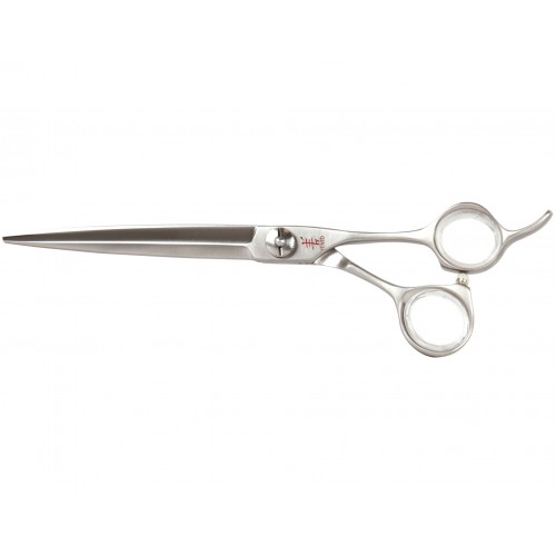Profesionálne, extrémne ostré nožnice, ručne vyrábané, vyrobené z najkvalitnejšej japonskej ocele Hitachi 440C s tvrdosťou Rockwell 60. Pevné a odolné s čepeľami ostrými ako žiletka, bez problémov si poradia aj s hustými a vlnenými kabátmi. Ergonomická, odsadená rukoväť zaisťuje maximálny komfort pri práci. Tento model je vybavený jednostranným háčikom a pohodlnou skrutkou na nastavenie prítlačnej sily. Vďaka extrémne nízkej hmotnosti je práca s týmto zariadením čistá radosť. Tieto nožnice majú hladký povrch, vďaka čomu vyzerajú veľmi elegantne. Balené v praktickom kufríku pre bezpečné skladovanie a prepravu.